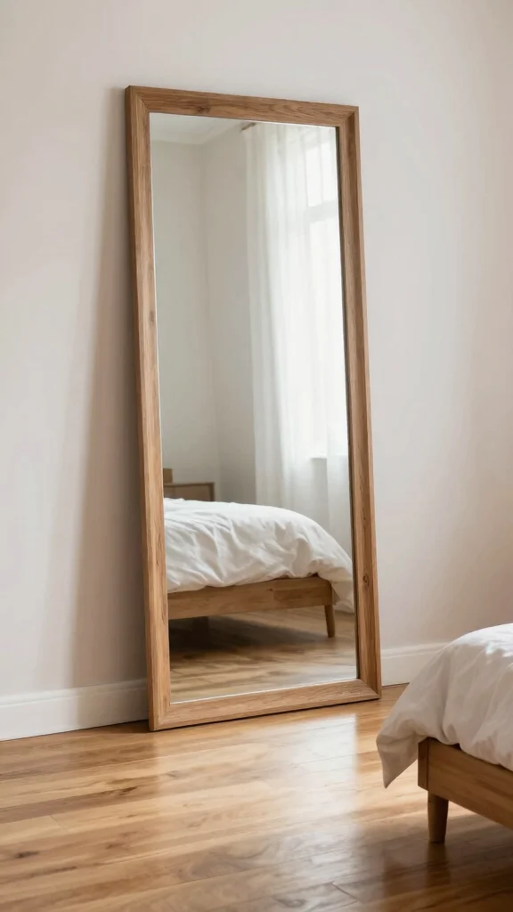 Did you know a well-placed mirror can double the perceived brightness in a wooden floor bedroom? Place a large floor mirror opposite a window to reflect daylight, making the space feel about 2x brighter and more expansive.
