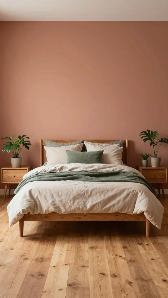 Consider painting your walls in these soothing hues and incorporating them into your bedding and decorative accessories. Pairing these earthy colors with wooden furniture creates a seamless flow, enhancing the overall aesthetic of your space.