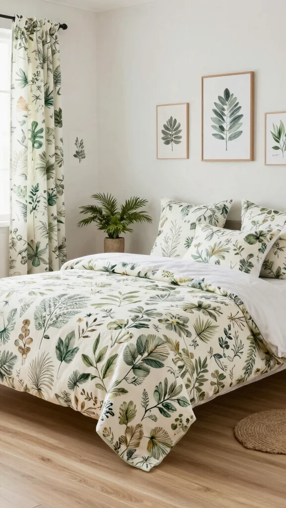 – Consider botanical-themed wall art for a cohesive look.
