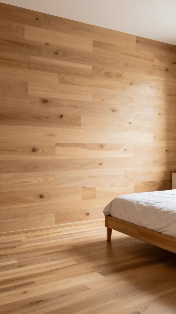 Ever notice how a wood-paneled wall makes a bedroom feel instantly cozier alongside wooden floors? Pair it with minimalist decor and darker stains for a bold, lasting vibe.